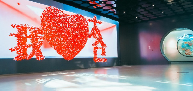 现代农业展示馆馆内分为跌水假山、水榭平台长廊、天圆地方州桥和月湖茄林四个意境各有特色的主题区域,贯穿东西的水系将四个景观区和谐地衔接在一起。主要展示了立柱栽培、营养液水培、管道栽培、储液储气式盆栽等高科技农业栽培技术,引进、种植了国内外新、奇、特植物新品种300余种。