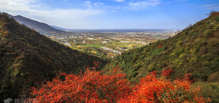 若漫步在通幽曲径上,便会看到棵棵黄栌红衣少女似的夹道迎宾。两边 树枝搭连,又似红色长廊。放眼山坡,一簇簇,一片片,加翠柏缀其间,颇显风韵,若是清晨,又遇朝阳甘露,更像红色绸缎上撒满了颗颗红色珍珠,闪烁着华美的光芒。