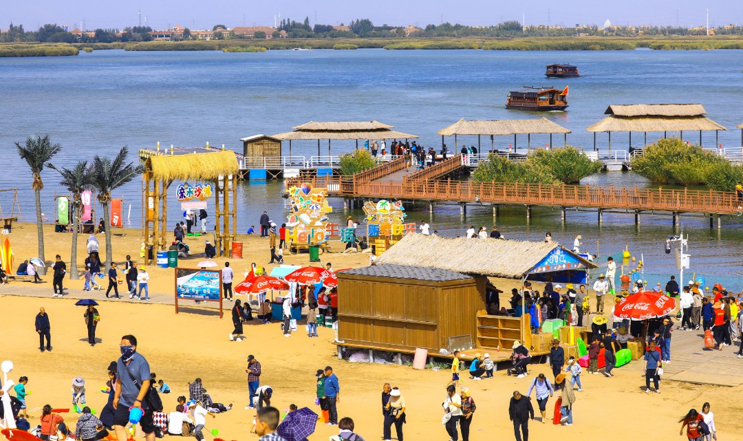 烟波浩渺的湖水、金黄如画的沙漠,加上那娥娜多姿的芦苇、成千上万的候鸟以及种类繁多的游鱼,碧水、金沙、翠苇、飞鸟、游鱼、远山、彩荷七大资源有机结合,使沙湖成为鸟的天堂、鱼的世界、旅游者的乐园。
