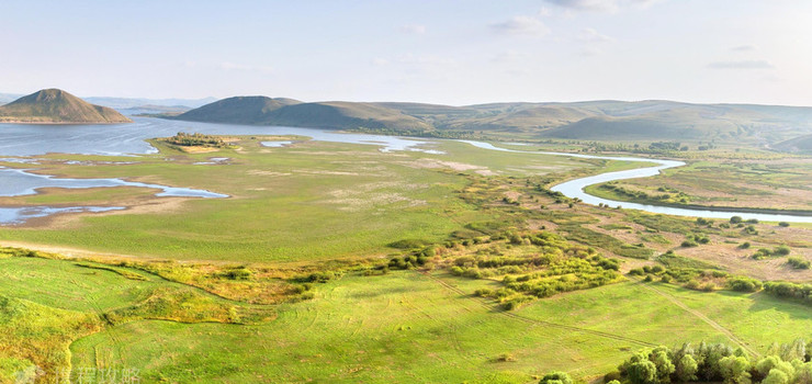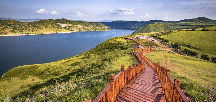内蒙古自治区锡林郭勒盟多伦县大河口乡境内,主入口距多伦县城16公里,属人工水库工程。前身是锡林郭勒草原上规模最大的水利枢纽工程——西山湾水库,库容1.1亿立方米,水面面积13.5平方公里,东西两岸各有17公里长,处于高山、沙地、草原之中,沿库区两岸及库区内湖心岛、半岛、沙半岛和山、水、沙、草、林浑然一体,构成一幅既壮观又秀美的立体画卷。