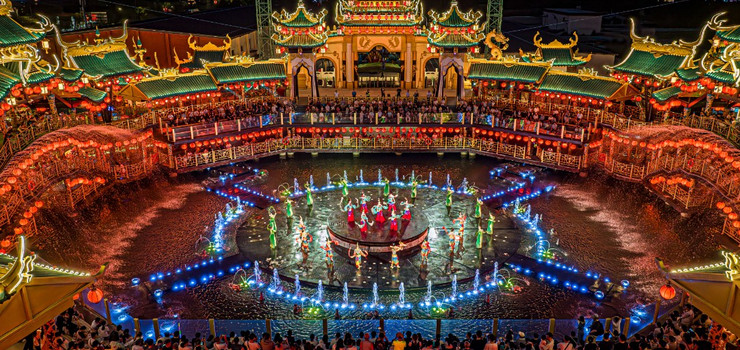 这里再现宋代千年古刹辉煌的万岁寺、体现佛儒道精神的龙坛、“九龙瀑”等众多景观均采用全新的设计理念,将宋文化与山水飞瀑作为描绘景观语言的主要元素,还原了盛世宋韵中描写的嶙峋起伏、溪流飞瀑、峡谷山涧并存的壮美景观。
