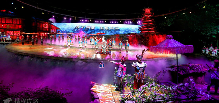 借助现代高科技表现手法将侗民族的传统文化与现代文明完善结合,用观众喜闻乐见的形式再现了博大精深的侗族风情,游客坐在中国圆形木质结构的巨大鸟巢观众席上,领略让世界惊叹不止的侗族风情。