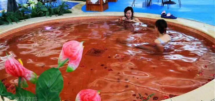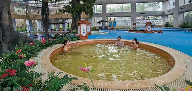 温泉小镇拥有众多室内外温泉,运用现代科技使天然温泉水对人体各个穴道进行按摩的原理,舒筋活络、通畅气脉、强身健体,通过添加人参、玫瑰花瓣、芦荟等配料,可以起到生津安神、美容养颜、缓解疲劳等不同功效。
