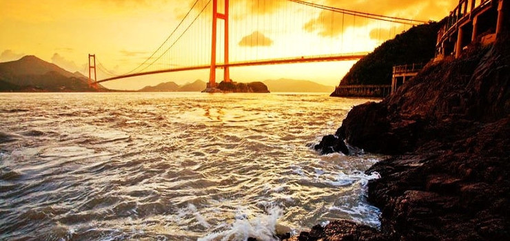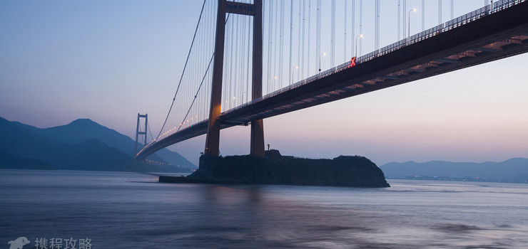 册子岛月亮湾景区位于舟山市定海区西北部册子乡册子岛门头山,距离定海古城22公里,距宁波北仑19公里。景区紧依钢箱梁悬索桥西堠门大桥,大桥雄姿英发,夕阳之下,妩媚并显,刚烈与柔情浑然一体,相得益彰。
