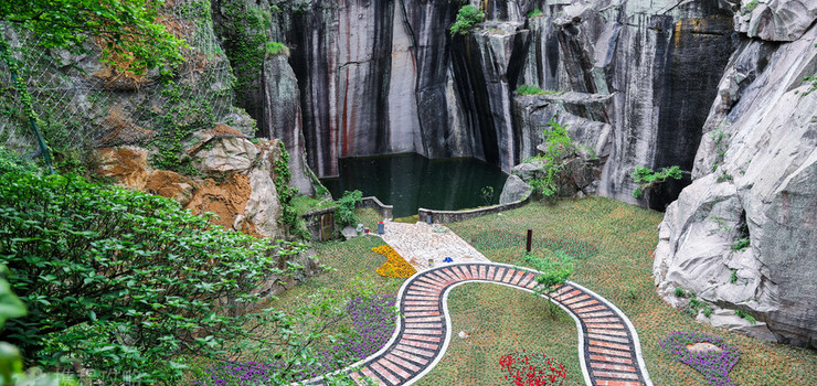 双合石壁位于岱山岛西端的岱西镇双合村,此地享有盛名的石板,质细而坚韧,经当地人民五六百年世世代代的艰辛取石开凿和大自然的鬼斧神工,至今留有石景旧迹50多处,奇石怪洞,形各有状。