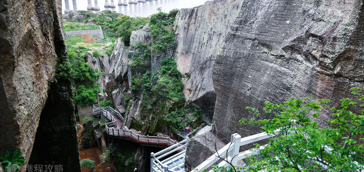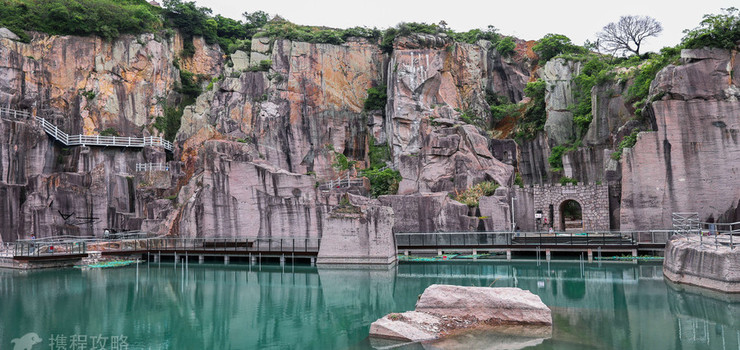 双合石壁景区有雄伟挺拔的石峰,有形如刀削的石壁,有清晰见底的石潭。进入类似欧式城堡的大门,沿塘口下窥,洞深幽静,碧水挽天;沿塘上望,峭壁戴云。当海岛夕阳投在石壁上,远眺近看,霞光如虹“石壁残照”已被选为古蓬莱仙岛十景之一。