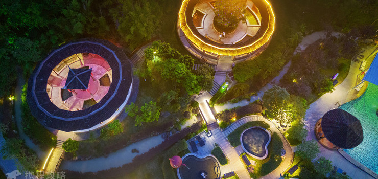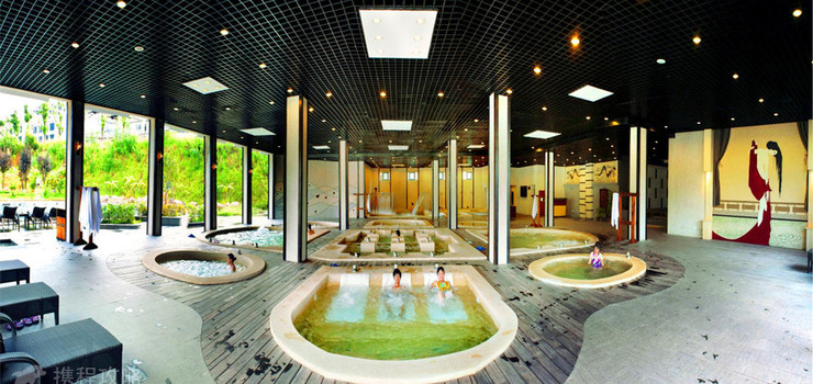 原生态森林群环绕,满目青翠,园区名贵树木成荫,幽山绿林翠湖间,勾勒出原生态传世养生之境。以“客家文化”为主题元素的大型半露天温泉,聚集香薰、酒韵、鱼疗、中草药等百余种温泉泡汤疗法,解除您的商旅疲劳,舒缓身心。园区亭台楼阁、青砖灰瓦、飞檐翘首、雕龙画栋,彰显浓郁客家文化风情。