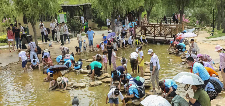 身临淘金小镇,颇有穿越回宋朝之感。在这里,您不仅能在淘金河里亲身体验“吹尽狂沙始到金”的收获和乐趣,过一把淘金瘾,还能观瞻源于宋代的黄金和粉丝非物质文化遗产展演,领略督办衙门、镖局驿站、金铺银库、酒肆戏楼等宋代殿台楼阁建筑的清雅柔逸风采,欣赏琳琅满目的市井风情。