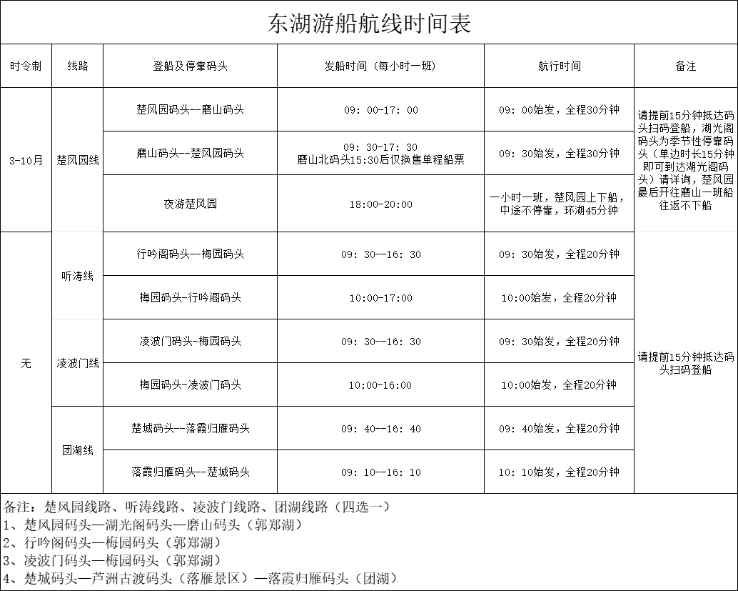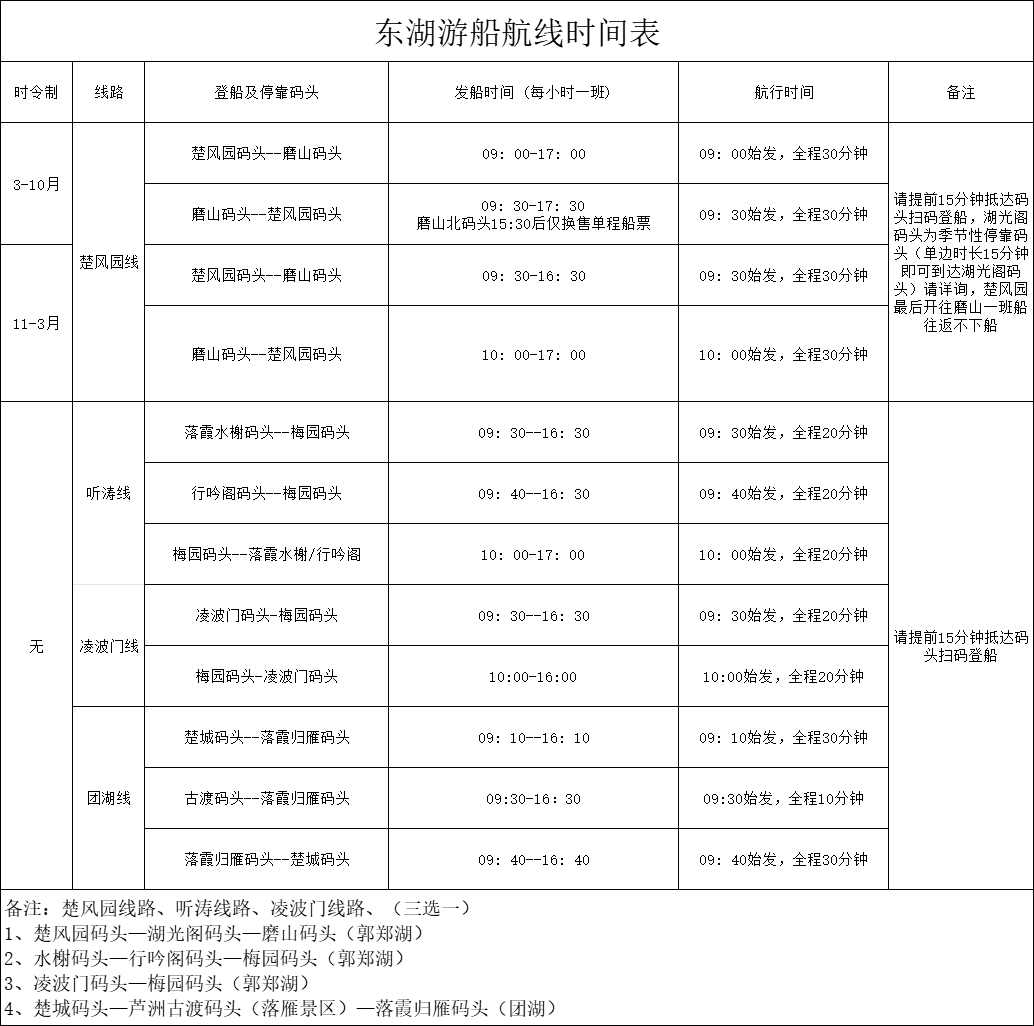 “人间仙境”落雁景区、“三大樱园”之磨山樱园、“科普教育基地”东湖海洋乐园、“浪漫约会地”东湖之眼……