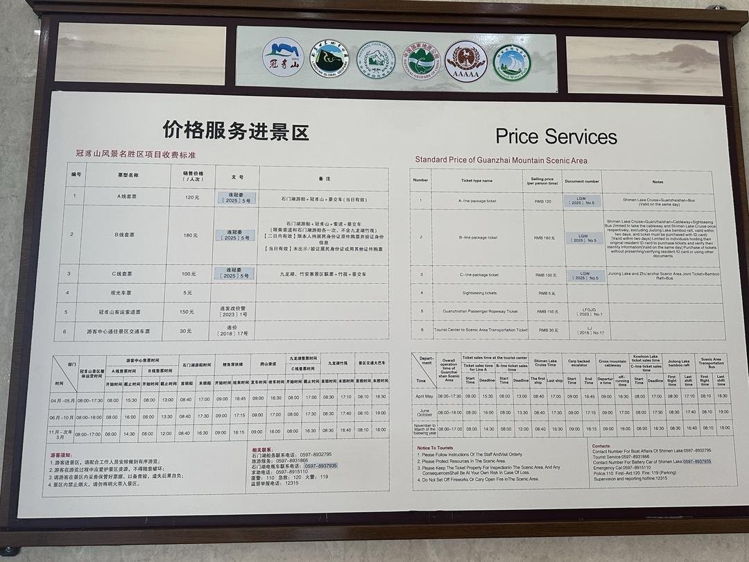 ⑤索道末班时间为15:30;冠豸山/石门湖取票截止时间为当日15:30;10-4月份末班游船16:30;5-9月份末班游船17:00。