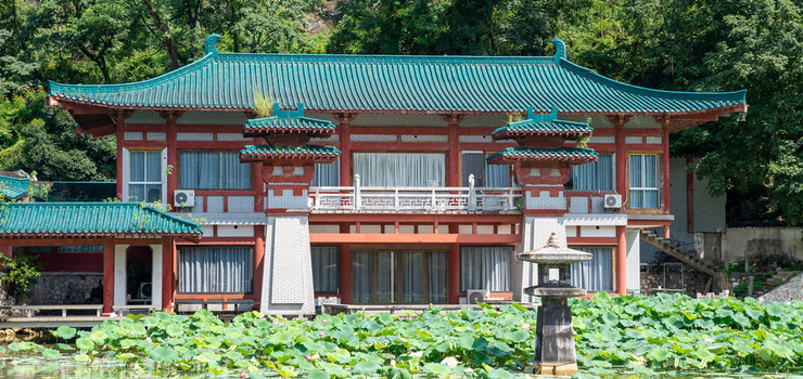 原为木结构,建于1958年,后废,现于旧址西一平台上,新建钢筋混凝上结构,单檐、攒尖顶、朱柱、绿瓦的八角亭,高10米,长宽各8.3米,面积71平方米。周有石栏,上有著名书画家黄苗子题额,下有楹联,"环观千峰景; 小坐一亭风",诱人流连,极目四野,境幽林静,开拓块垒,颐和情性。