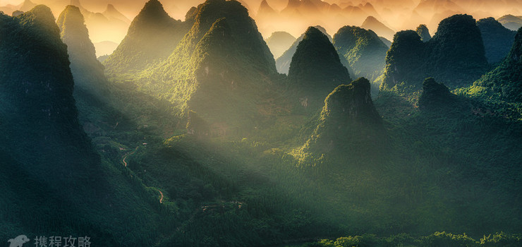 西山景区位于桂林市中心,占地面积125万平方米,早在1000多年前的唐代便成为旅游胜地。景区由西山群峰、西湖及隐山组成,里面群峰环绕耸立,西湖、桃花江相映带,形成山重水复的奇景。每近黄昏,夕阳斜挂山峰,云林变幻、金光万道、紫气蒸腾,是为脍炙人口的桂林老八景之“西峰夕照”。