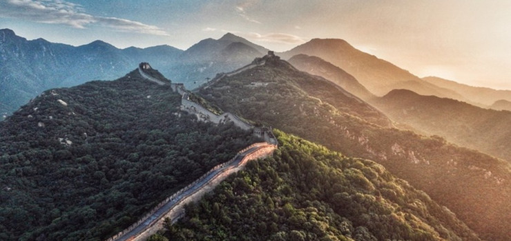 夏天的八达岭长城一片绿意盎然,犹如一片苍翠的绿海。