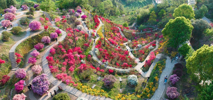 篁岭四季皆可游,除了说它的民居古建,四季轮番种植不同花卉的观光园,也别有风味。如果说春天油菜花是婺源旅游的代名词,那么四季千亩观光园,打破了季节对婺源旅游的限制。春赏油菜花,夏赏紫薇、薰衣草和荷花,秋看菊花和串串红,每个季节的不同景象都给了客人应季的感受。而在四季观光园不远处,还有一片百余株国家一级保护树种组成的古树林。枫树、红豆杉、樟树等散落水口各处,而古老的樟树距今已有一千五百多年。这片四季常青的古树林净化空气,吸收二氧化碳、释放大量的负氧离子,其浓度平均高达1330个/立方厘米,可谓天然氧吧!