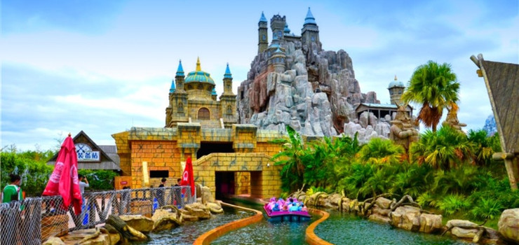 以吴哥窟为主要的建筑风格,游客将乘坐小船进入危险的侏罗纪时代,在茂密雨林经历一场惊心动魄的冒险之旅。紧张和恐怖弥漫四周,26米高空瀑布的急速滑坠将给您带来畅快和刺激的感受。