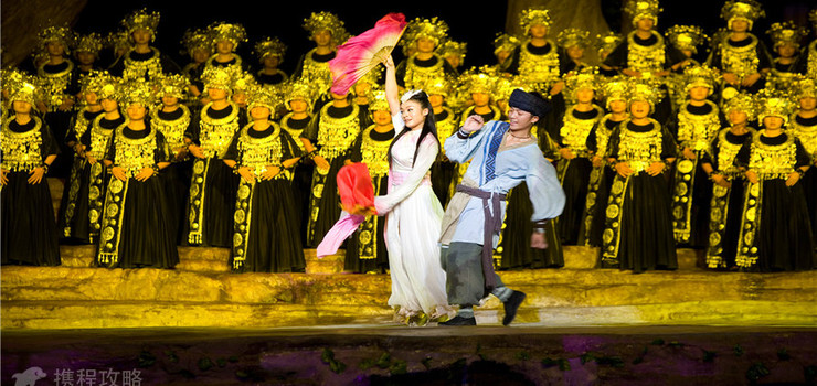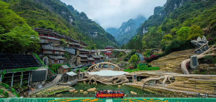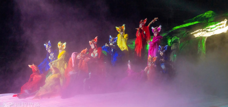 天门狐仙是一部震撼的山水实景演出、魔幻音乐剧。故事改编自神话传说《刘海砍樵》,讲述了一段感天动地的人狐之恋。剧中真实展现了东方玄幻风格的场景:一个半足球场大小的剧院漫天飞雪、狐狸精在舞台上直接变幻成人型、较大可移动人造月亮、瞬间被流水包裹的5000平米玻璃钢炫彩舞台、60米长高空飞桥、主人公飞升至上百米高空变换成星星消失……高科技为你呈现的视觉盛宴。