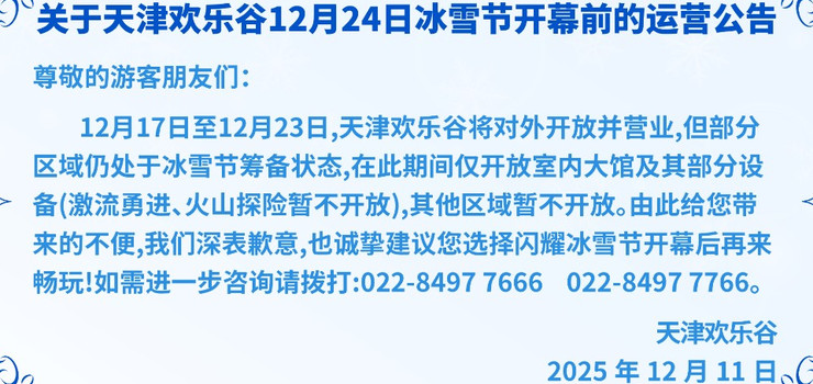 天津欢乐谷主题公园,一个充满激 情与浪漫的繁华都市开心地。通过场馆的灵活转换,巧妙的克服了中国北方冬寒夏闷的气候限制,让游客从炎炎夏日到数九隆冬都可以体验巨浪汹涌澎湃、洪流翻江倒海的水上玩乐盛宴!当然,这里更有各样大型机动项目,上天下地峡湾飞龙木质过山车、360°旋转雷神之锤……无不挑战极限、挑拨心跳!还等什么,来这里,加入一场欢乐与梦想的盛宴!