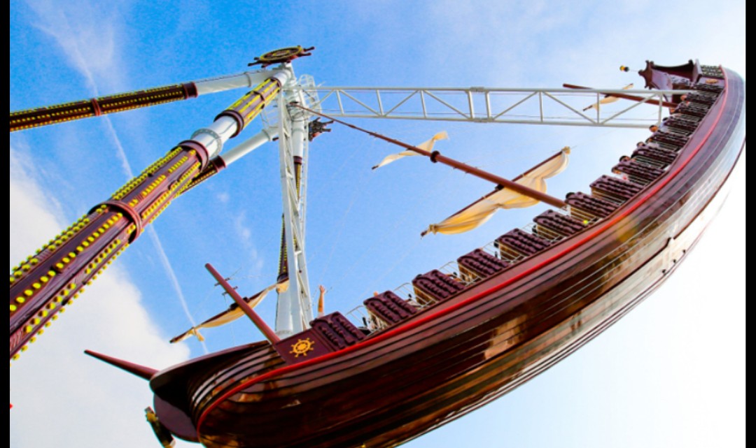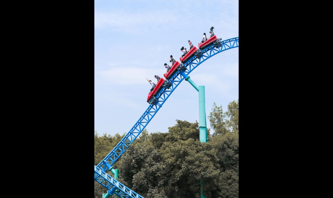 由缓至急的往复摆动,犹如置身惊涛骇浪的大海之中,时而冲上浪涛之颠,时而跌落波澜之底,感受乘风破浪之险,挑战心理承受能力极限。交替而至的失重和超重感受,惊险刺激而又回味无穷。