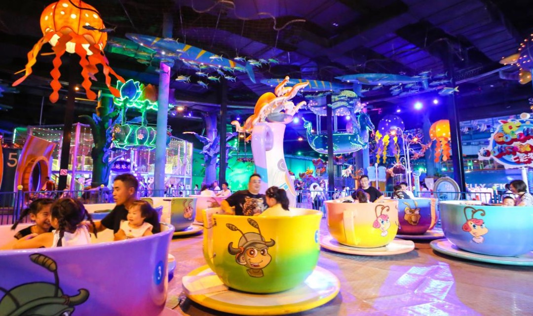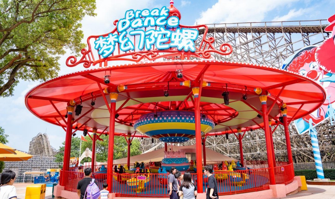 从正大门进入,映入眼帘的就是欢乐时光区啦!轻松愉悦的游玩体验,适合一家人来开开心心打卡!