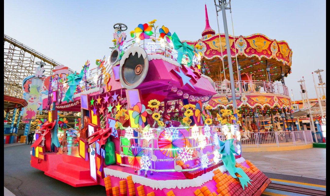 数辆巨型主题花车阵列,音乐与舞蹈带动全场,数百名NPC演员齐聚互动,无论白昼与黑夜,这里永远洋溢着不变的欢乐与热情。