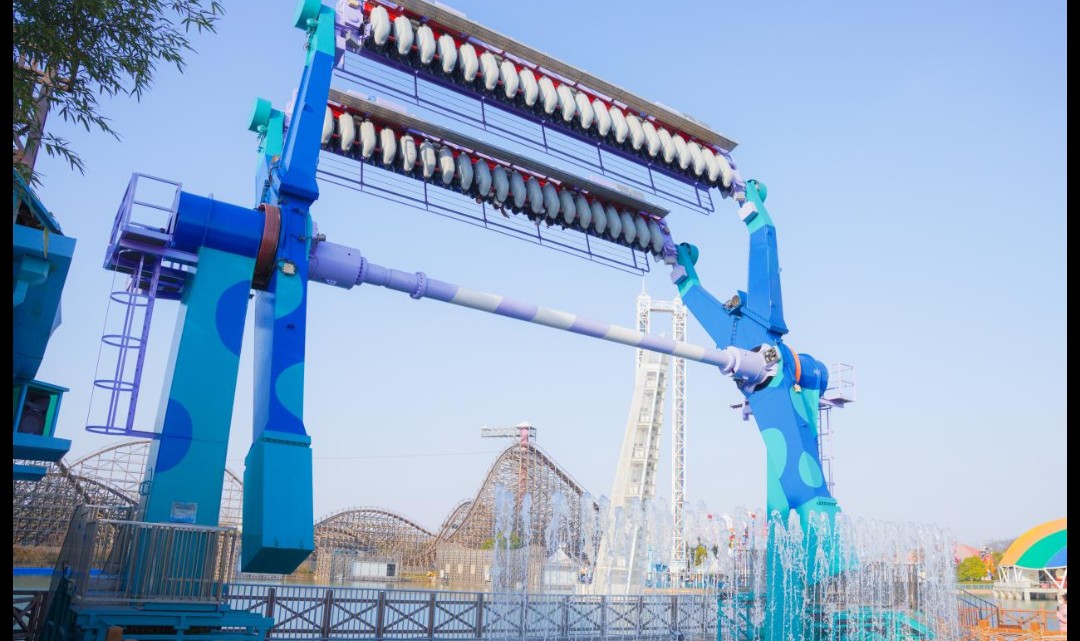 全新引进的悬挂式家庭过山车,头顶是蔚蓝的天空,脚下是涌动的喷泉,带您和家人一起欢乐地驰骋于天地之间。