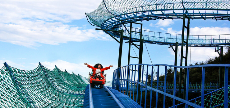 管式滑道上、下行总长约2650米,落差100米,连接景区主干道与悬壁火车起点站。乘坐管式滑道既能省去游客到达车站登山之辛苦又能满足游客体验惊险刺激感。