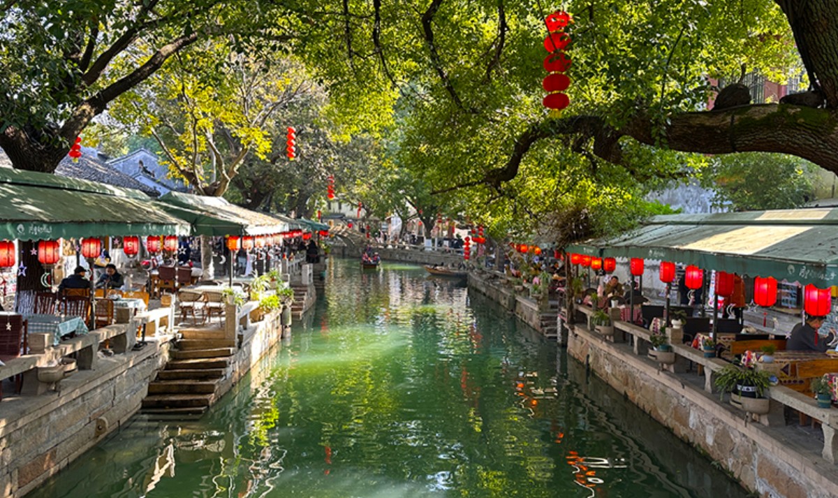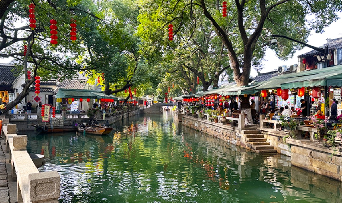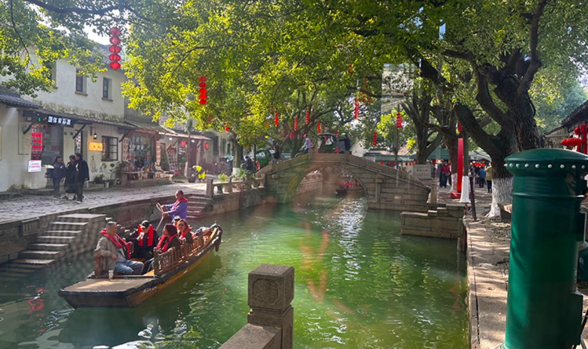漫步在青石路上,呼吸着江南清新的空气,耳边萦绕着吴侬软语,置身其中,仿佛看到了古镇千年的辉煌和斑驳琉璃水光交错的繁华。