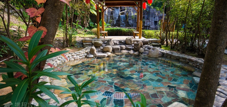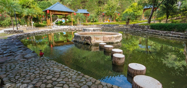 温泉区的建筑格调揉合了中国古代园林的浪漫与瑶族传统建筑情调的温馨,泉水清澈见底,更有南岭深山的灵芝温泉、松针温泉、五指毛桃温泉和茶叶温泉等特色温泉,加上温馨舒适的桑拿、沐足健康保健,让您在疲劳消失贻尽之时,更享那份难寻的宁静与自在。