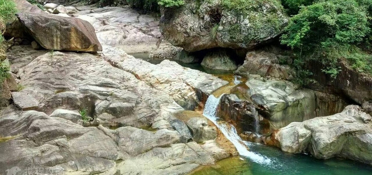 水流清澈见底,流淌在岩石之间发出曼妙的声音。