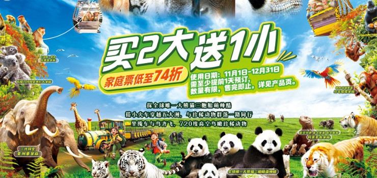 除了自驾游,乘车游览区还可以免费乘坐小火车,不出国门也可轻松穿越五大洲,看遍世界珍奇动物,体验一次环球动物旅行,一个亲近五大洲动物机会!乘车游览区近百万平方米的原生态保护区,来自五大洲的珍稀动物在其中生息繁衍。让你不出国门体验神奇的环球之旅!身临其境,360度全方位沉浸在感受真实、自然的动物世界;穿过狂野地带,众多凶猛的森林猛兽将在这里和大家见面,惊险刺激;来到非洲草原,众多的动物大种群集聚生活在草原上,可以让人真实的感受到动物世界里边,动物迁徙、动物种群们在大草原上黑压压的一片移动狂奔的壮观景象;在乘车游览区里,动物自由自在的合群生活,是名副其实的动物世界。