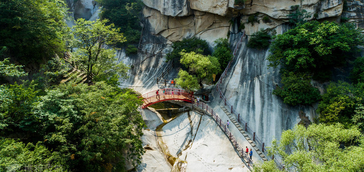 瀑布龙潭既雄伟壮观,又湍急惊险,瀑布轰鸣,潭水急旋,峰崖陡峭,谷深路窄。登梯走桥时可从险中观景,游人追求险中景,甘愿“铤而走险”不临险境,便不能领略险中景的妙趣,险中景给游人增添了力量,大有不到真潭非好汉的感受。
