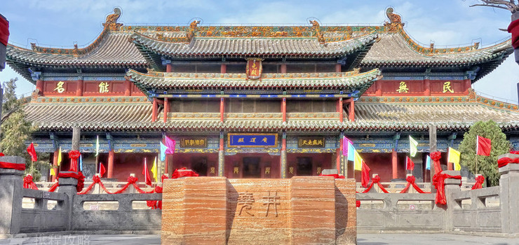 尧庙正面耸立五凤楼,雄奇俊秀,原名光天阁,意为尧舜光天下之明。楼下有三个砖券门洞直通中院,楼上重檐之下,围设围 廊门台,登高望远,宫内外景物尽收眼底。顶上脊饰陶俑31个,人物个个栩栩如生。五凤和鸣象征天降仁君,君臣团结,河清海宴,国泰民安。穿过五凤楼,便是尧井亭,亭形六角,周设围栏,井深十 米,上加篷盖,传说为帝尧亲凿,实为启示后人饮水思源,不忘帝尧功德。