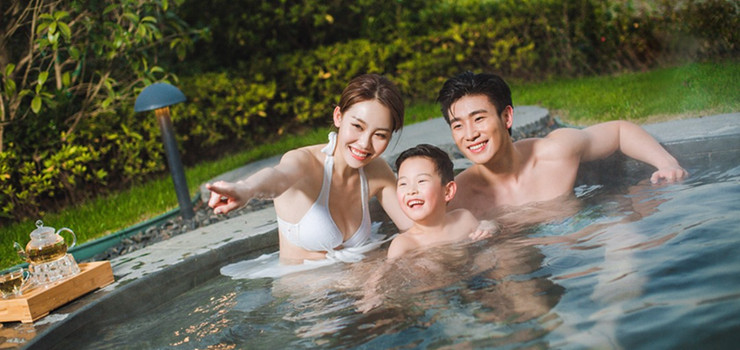 弘阳洛克菲温泉水温37℃-43℃,水质中性温和;不同季节开放的室内外泡池。休闲、静谧的湖山环境是温泉养生度假不二选择!