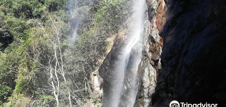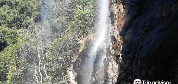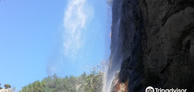 景区以瀑布和绝壁为胜,瀑布总体落差高达一百多米,分五叠层层贴崖而坠,莹如白练,柔若云锦,冬夏不竭。石壁山势陡峭,壁面如削,上面密布的石纹有如一部散落的天书,让你刚为银瀑飞泉惊叹过,又情不自禁的为眼前的石壁叫绝。