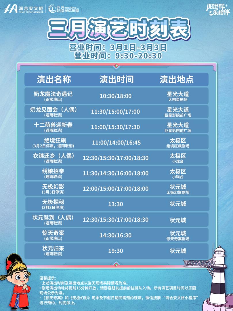 了保证您的安全,阳澄半岛乐园可能会在没有预先告知的情况下,暂停或关闭部分游乐设施及表演。如有
