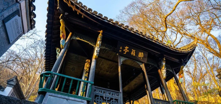 醉翁亭位于琅琊山山腰,让泉之畔,所谓“峰回路转,有亭翼然”,是北宋庆历六年 (1046) 琅琊山开化禅寺住持僧人智仙为时任滁州知州的欧阳修所建。当时,欧阳修因政治上的失意而常与同僚到此游乐饮酒,由此欧阳修还专门写下久传不衰的散文名篇《醉翁亭记》。
