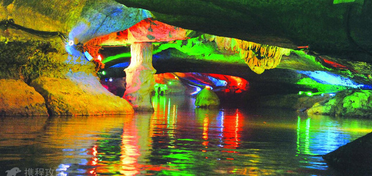 太极洞,洞中有水,洞洞相连,形成了奇丽的天然景观。其中如“壶天宫”、“玉皇宫”、“海天宫”、“洞中黄山”、“大千世界”、“仙源小三峡”等景点,都有独特的奇趣。在两仪宫“二仪攸分”石刻前的平台上,有奇石为“八仙过海”。洞中八仙,或坐或立,或歌或啸,神态各异,栩栩如生。游人在此处还可遥见太上老君的石化仙容,故此处景点又名“八仙朝圣”。