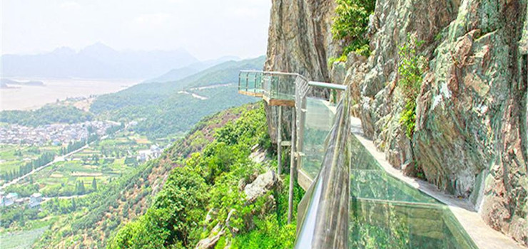 这边是高山,那边是大海,脚下是山崖,眼前是世界。宁波首条海景观光玻璃栈道带给你的,绝不仅仅只有那一丝丝的紧张!站在玻璃栈道上,望着远处大海波光粼粼,凉爽的山风徐徐吹来,我就不信你还能挪得动脚喔~