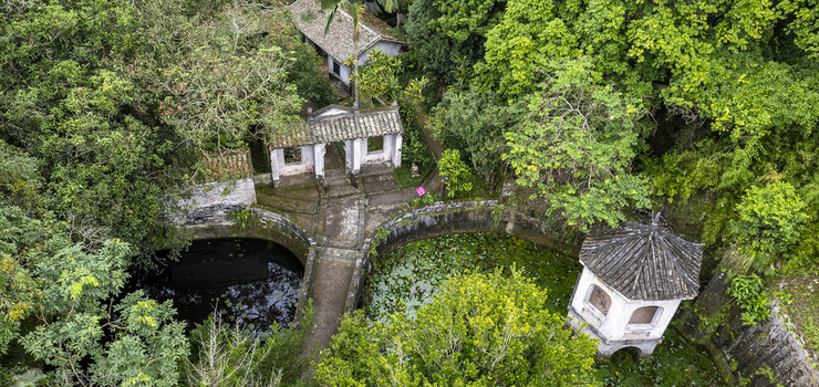 谢鲁山庄原名树人书院,据传庄主有藏书数万册,建书院意在宣扬儒家精神,孔孟之道。树人书院前有一联:安得奇书三千车娱兹白首,再种名花十万本缀此青山。民国九年一月建园,既公元一九二O年,据今已有百年历史了。书院内藏书在文化大革命时期再度经“焚书坑儒”,只有院内青砖白墙,繁花仙草,还依稀记得当年主人的豪情壮志。清静素雅,陶然怡世的书院中没有“风声,雨声,读书声声声入耳”,只有“人声,车声,谈笑声声声恼人”。