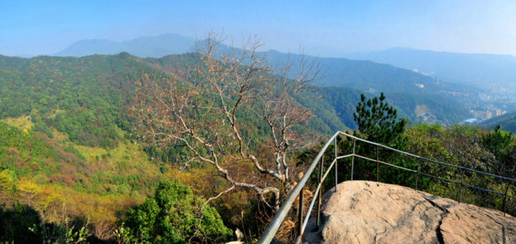 紫清山景区位于洪崖丹井西侧山麓之中,景区内巨石叠垒,相互搁架,洞内有洞,洞悬小溪,飞瀑座帘,潭水碧幽,泉水清冽,苍松白云,处处索藤,形成了它清幽险峻绝妙的自然风光,登高而望,群山远景,田园溪谷,山埠平林,都邑庐舍,江河轮廓,皆在视野之中,令人心旷神怡。