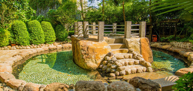 全园林式露天泳池、天然火山温泉,含有丰富的矿物质,对多种疾病均有疗效,有保健、美容、护肤、疗养之功效,通过浴用、吸入等多重用途可以使您解除病痛,消除疲劳,焕发青春活力。绚丽迷人的热带植物,青麻石、鹅卵石点缀,乔木、灌木高低错落,层次分明,每位客户可充分体验东南亚风情度假生活。早年雷州农村用作洗蕃薯的石缸,由原重75吨整石的雷州火山石雕凿而成,是温泉区当之无愧的“十八金缸”。周围更可举办PARTY,是同学聚会或商业聚会的好场所。
