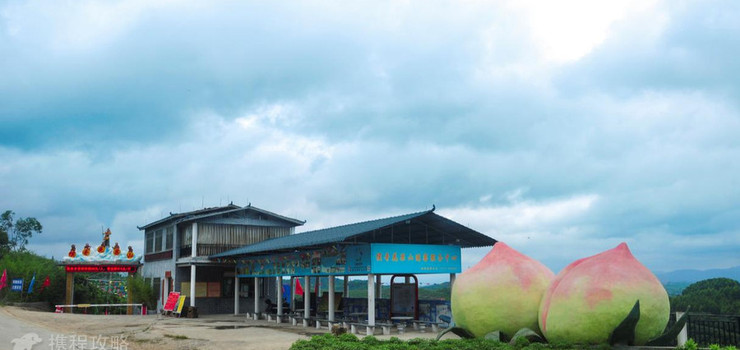 侯哥花果山大门位于南宁市029县道旁,交通便利,设置售票窗口、游客服务中心、供游客休息的风雨廊和两颗大仙桃塑像。