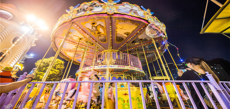 位于观光塔旁的皇家马车,采用宫廷马车造型,白天尊享皇室体验,夜间灯光璀璨给您梦幻体验,和观光塔并称恐龙城浪漫爱情体验地。