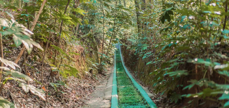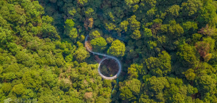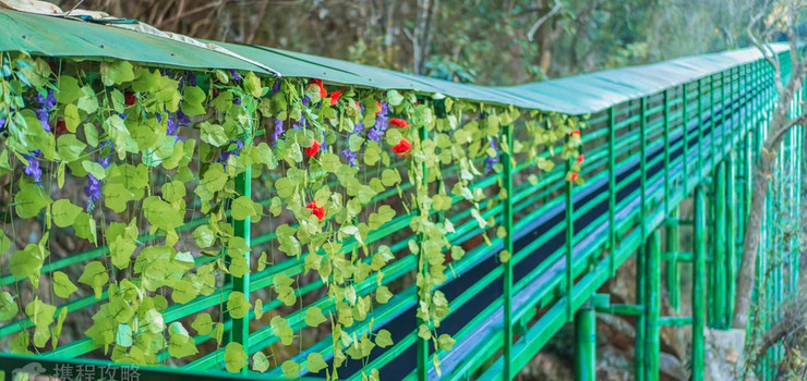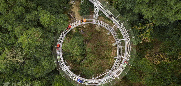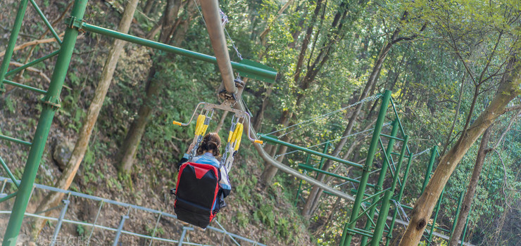 密林之间的一段通道,坐在花草车上,放松身心,顺着坡度慢慢的向下滑动,体验清新的空气铺面而来的惊喜。