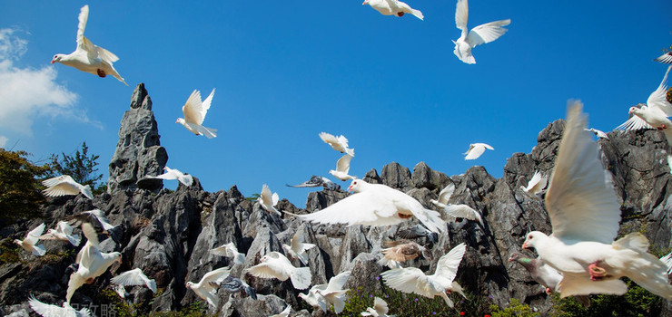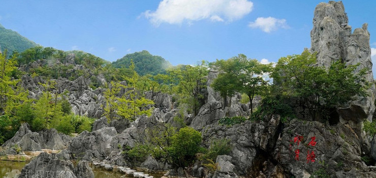 峰林造型奇特,象形奇石遍布,形成数百个栩栩如生的独特景观,被旅游界人士称为“天然动物博物馆”。“白云古道”深邃幽秘,“狮象守门”奇异壮观,“琴音洞天”幽雅静谧。