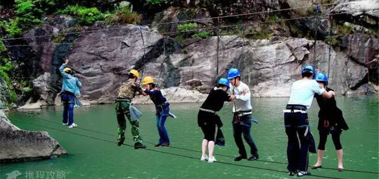 峡谷运动乐园位于九鲤溪的上游,在风景秀丽长约2公里的峡谷里设有缅甸桥、抽板过河、飞檐走壁、搭索过涧、飞夺泸定桥、携手并进、穿越绳网、高空溜索、凌空漫步、水上飞等十多个激发个人潜能,锤炼意志品质,熔炼团队精神的经典户外运动体验项目。这种体验项目的情境设计和寓乐于游的参与模式,把游览峡谷山光水色和体验户外运动完美融合,让旅游真正“动”起来。挑战自我、体味人生,九鲤溪峡谷运动乐园让您融入大自然,体验勇敢者的游戏。