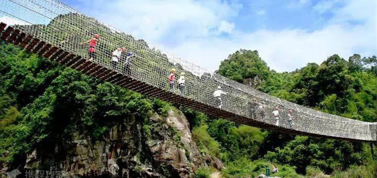 缅甸桥是仿造缅甸热带丛林中的索桥建造而成的,桥罩在网中,人在其中可体会到丛林历险的感觉,在前进中饱览乌杯峡谷的大好风光,这项难度系数为0的活动,很快让人身心放松彻底融入。
