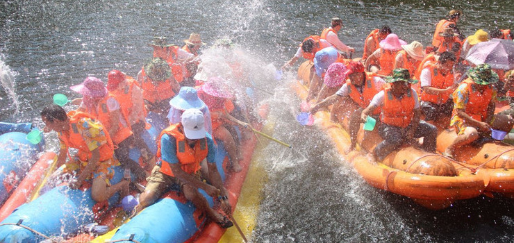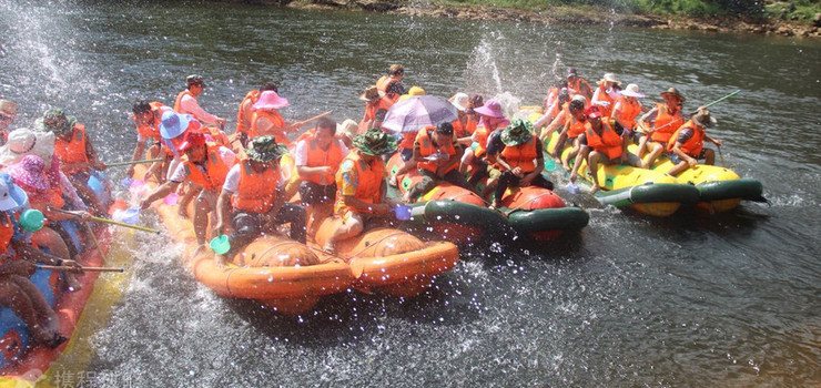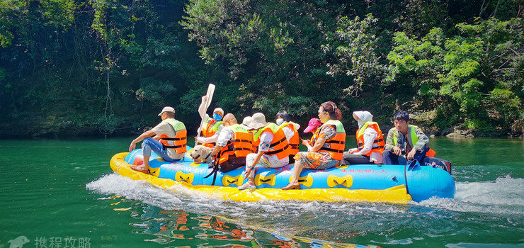 漂流用船为橡胶艇,每条船可乘12人。船上船工一名,保证游客安全,讲解沿途风光。