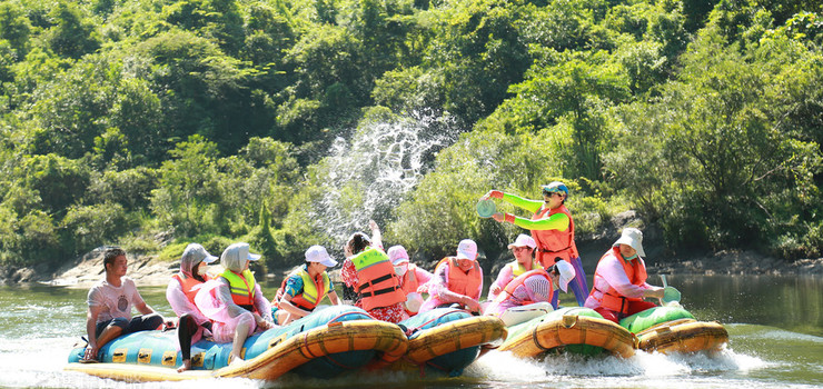 激情漂流,由烟园大桥至会山乡,全长约15千米,时间约2小时。这里四季皆可漂流,既有穿越激流险滩带来的刺激体验,又能充分感受峡谷两岸保存完好的热带雨林风光,还能领略当地苗村黎寨的独特风情。