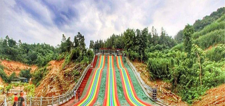 从高处一滑而下,风声在耳边呼啸而过,转眼被抛到眼后的七彩滑道,好玩刺激又赏心悦目。